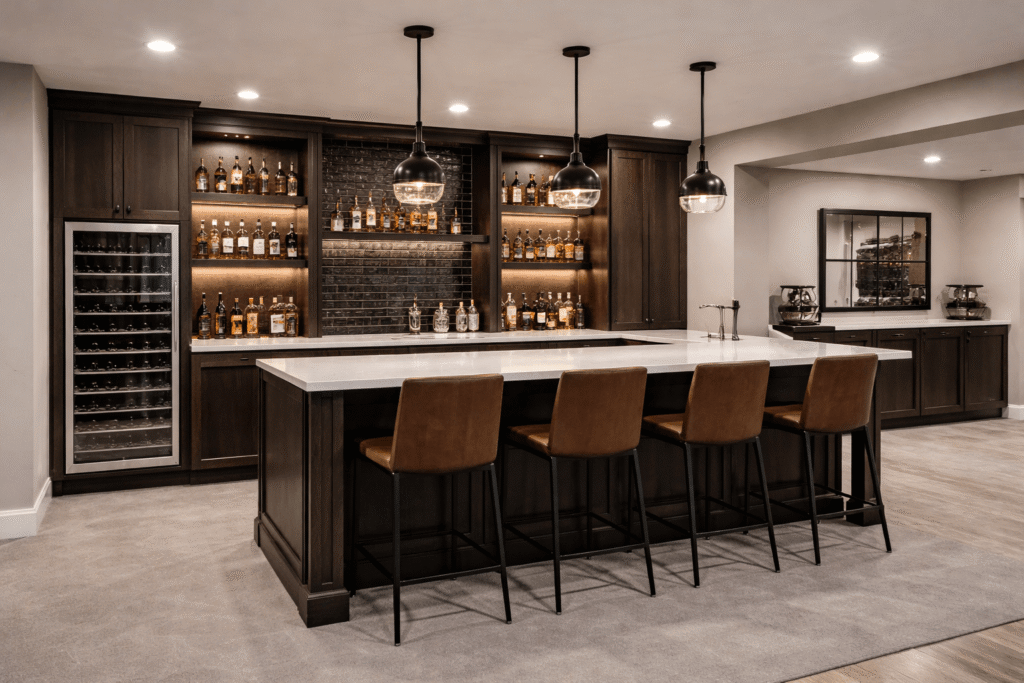 We plan bar layouts, plumbing, electrical, and finishes upfront to ensure everything functions properly and integrates seamlessly with the rest of the space. Nothing is improvised once construction begins.